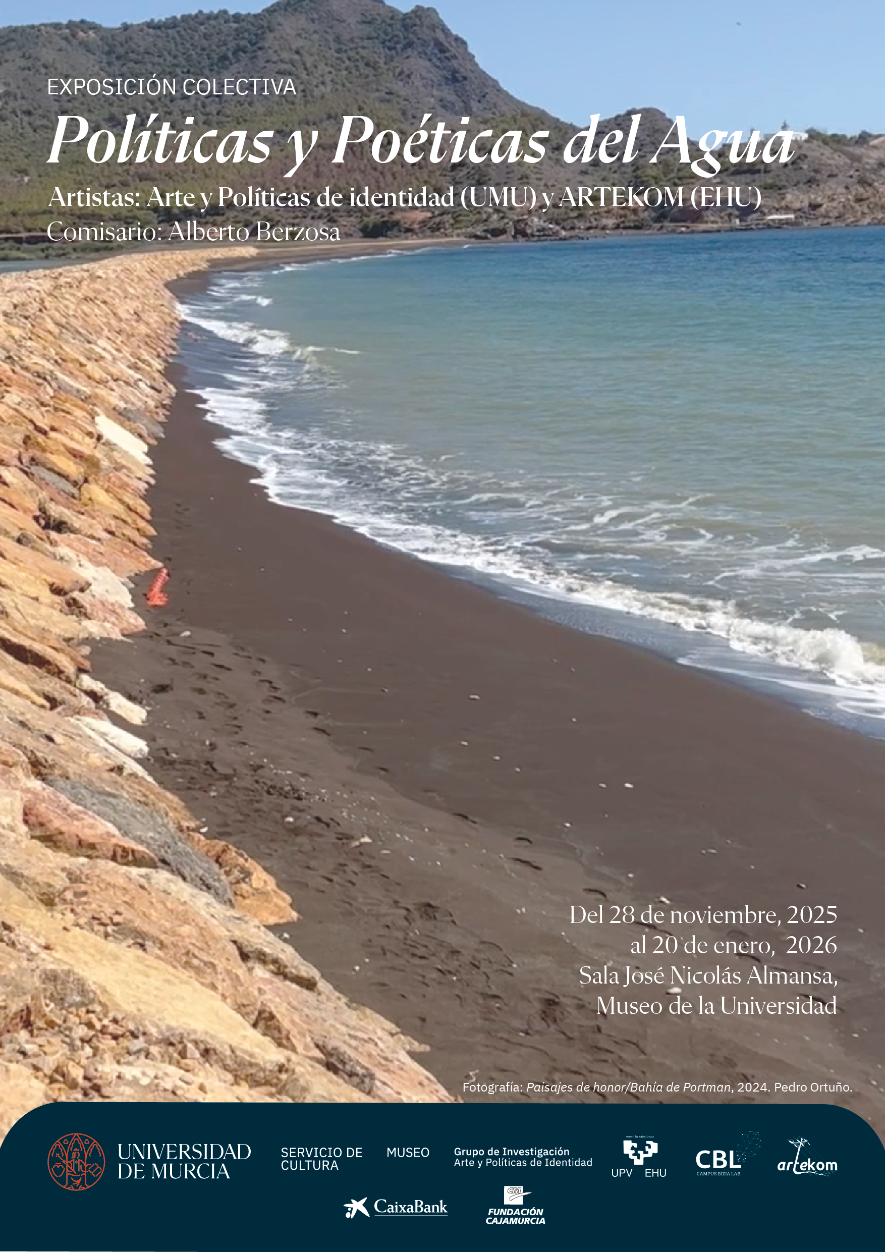 Exposición » Políticas y Poéticas del agua». 24 artistas UMU y EHU. Comisariada por Alberto Berzosa. Del 28 de noviembre de 2025 al 20 de enero de 2026. Sala José Nicolás Almansa.