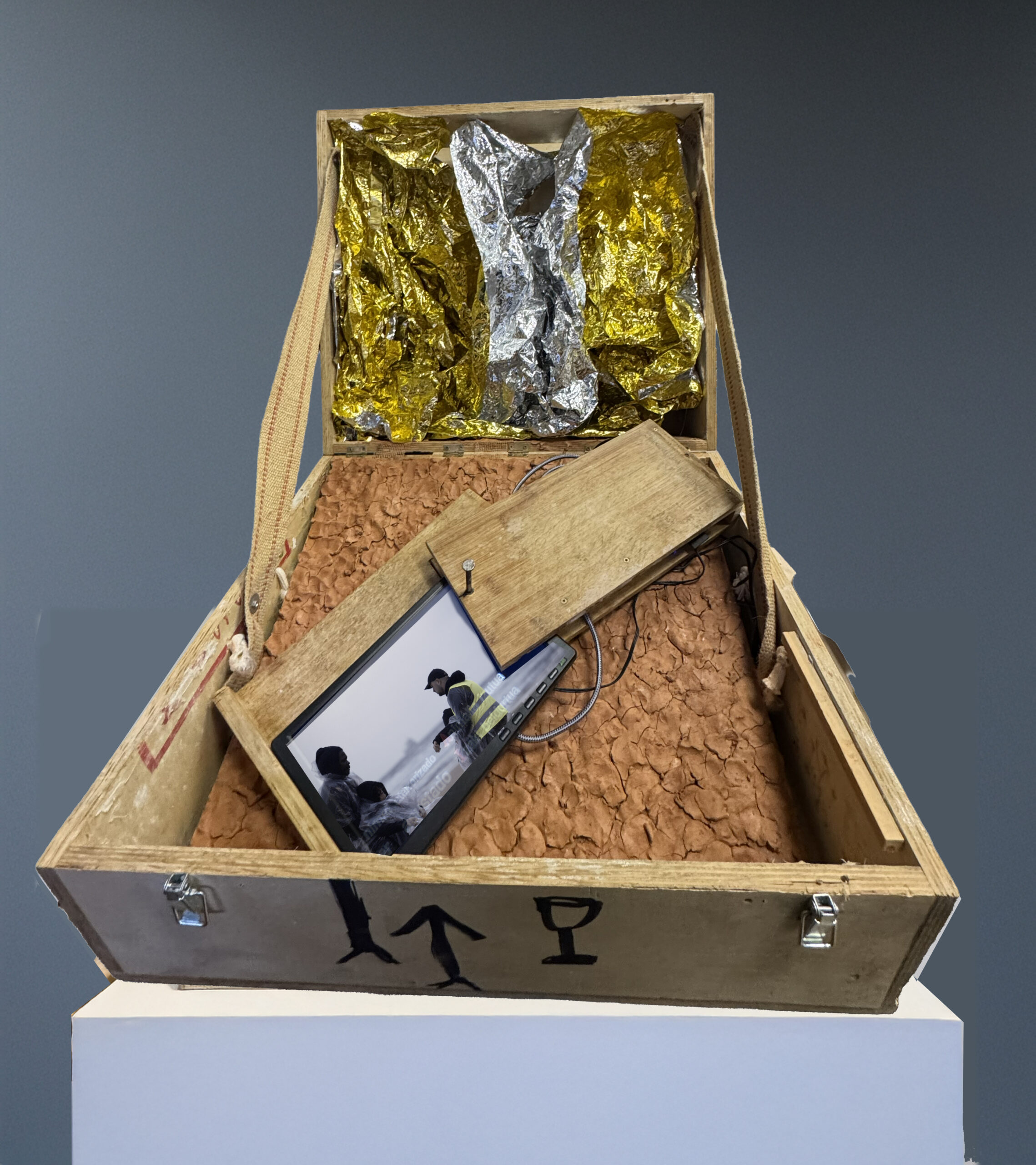 La pieza L-UR, parte de una reflexión compartida en el seno del grupo ARTEKOM donde el proceso de reutilización y reciclaje de nuestro propio trabajo artístico es un objetivo esencial. Esta obra parte del material de un embalaje que sirvió de transporte para una obra que se envió a Inglaterra, luego convertida en maleta para una instalación en Escocia, y ahora una nueva maleta para albergar L-UR en esta exposición “Agua, Políticas y poéticas” en Bilbao y en Murcia.